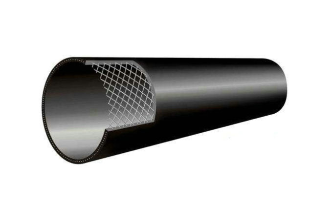 以包覆處理后的高強(qiáng)度鋼絲連接纏繞成型的芯層為增強(qiáng)骨架,采用熱熔膠、雙抗料通過擠出成型方法復(fù)合成一體的管材。
