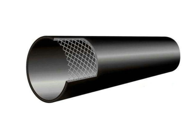鋼絲網(wǎng)骨架塑料(聚乙烯)復(fù)合管是以纏繞鋼絲網(wǎng)為中間層,內(nèi)外層為聚乙烯塑料或抗靜電阻燃料,采用專用熱熔膠粘貼固定鋼絲網(wǎng),通過擠出成型復(fù)合成一體的管材。通過在普通塑料中間層纏繞一層高強(qiáng)度鋼絲來提高管材耐壓等級(jí)。這種復(fù)合管材壁厚比純PE管減少,比普通的純PE管(特別是口徑大于250mm以上)用料少,成本有所下降,是10-35公斤壓力管材的一種替代品,廣泛應(yīng)用于供水、排水、通風(fēng)抽放瓦斯氣體等領(lǐng)域。